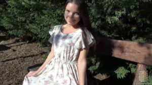 Ashly Anderson returns in a remastered 4K scene. The 21-year-old busty brunette from Texas performs extended oral on Justin, takes multiple positions including doggy and missionary, rides cowgirl, and swallows two loads during the scene.