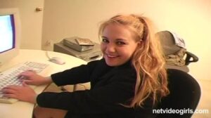 Blonde with a perfect pink pussy talks dirty while.