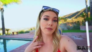A fashion film featuring a blonde model posing in stylish latex attire.