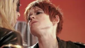 Gorgeous, thin brunette TS Zariah Aura looks mesmerizing in pink vinyl, two-piece fetish wear with black fishnet stockings. Striking, orange-haired trans Jean Hollywood stuns in vibrant pink-and-blue lingerie. Intimate scenes include blowjob, anal reaming, and mutual masturbation.