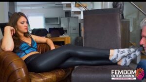 A captivating scene featuring Eva Linda as she indulges in foot worship, showcasing sweaty soles in socks.